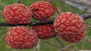 | Zhe fruit tree scientific name is Maclura tricuspidata. Zhe is a fruit tree native to East Asia like China and Nepal and long time a go have been naturalized in Japan. Zhe tree can grow up to 6 meters and when the trees are young they have a thorn but when they have a mature age, the thorn will dissapear. Although zhe fruits are like mulberry, but they are not a classified same with mulberry. When ripe, zhe fruit color are red or maroon and contains rich red flesh inside them with 3-6 seeds per fruit. Another name of zhe are : che, cudrang, silkworm thorn, Chinese mulberry and mandarin melon berry. |